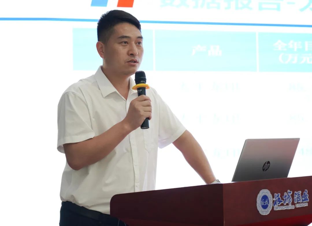 板城酒業營銷管理部經理楊輝匯報上半年度的相關工作,對戰略目標落地的關鍵指標、深度分銷模式落地的數量與質量等工作開展進行有效追蹤、檢核與分析。