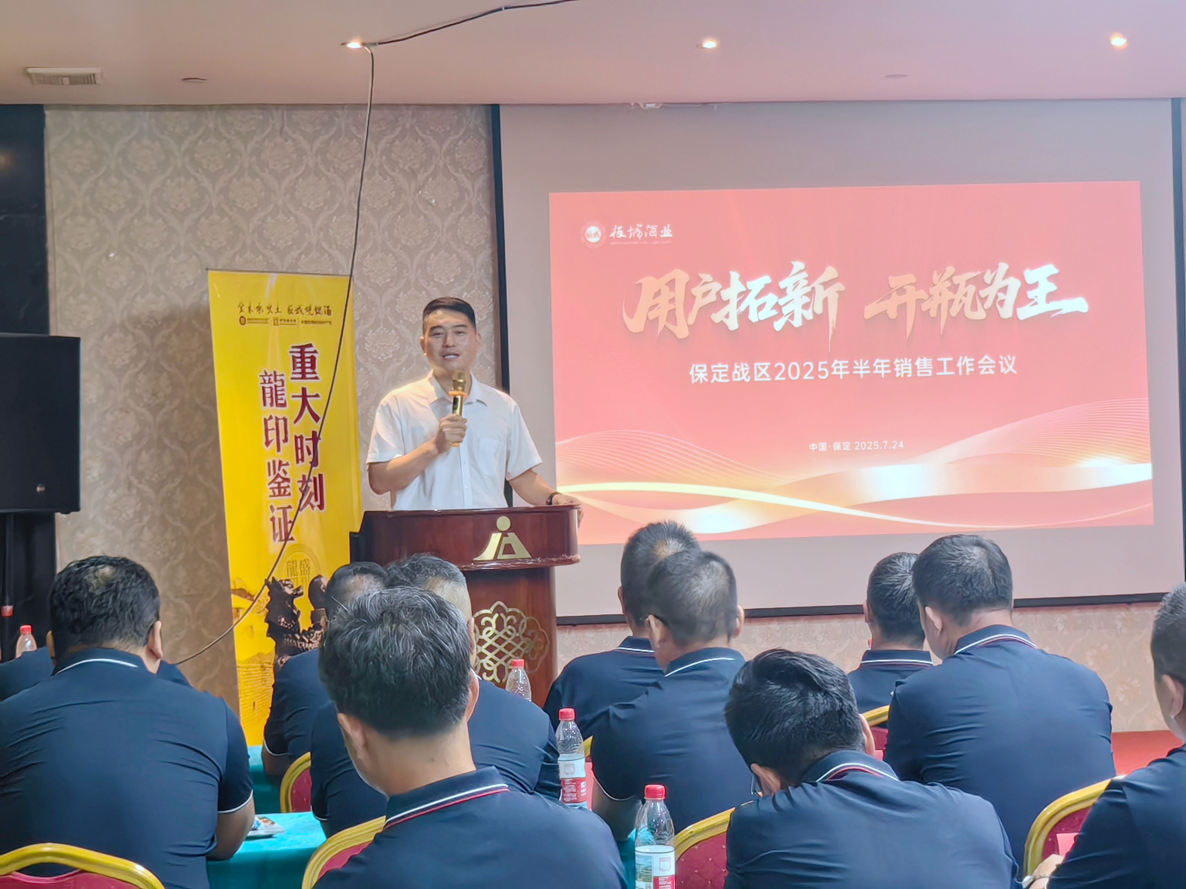 板城酒業銷售常務副總經理許樹鋼,保定戰區經理賈亞飛,業務經理、業務團隊及經銷商、團購商齊聚一堂,共商發展大計,吹響2025年下半年度的沖鋒號角。